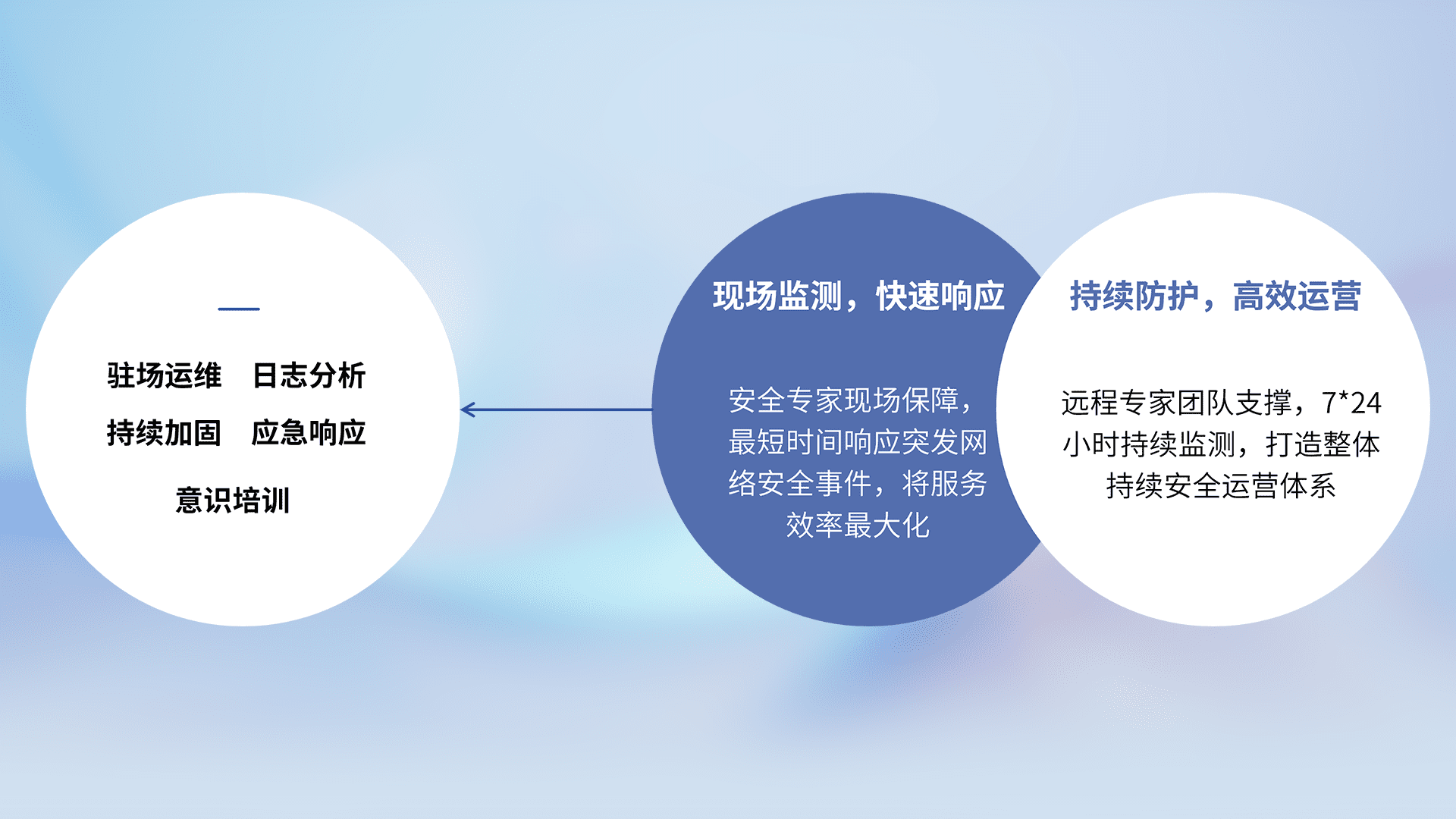 针对客户行业特性,,,提供专属的一站式安全管理服务,,帮助客户全面感知网络空间威胁,,,通过安全专家的线上、、、、线下防护支持,,,实现风险闭环,,将安全保障常态化,,,为客户打造常态化安全运维运营服务。。。。